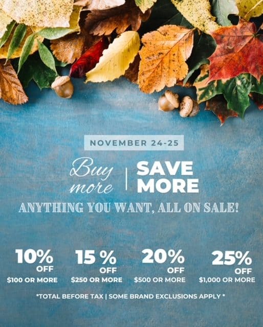 Visit Holly & Brooks November 24 & 25 for their buy more save more deal!